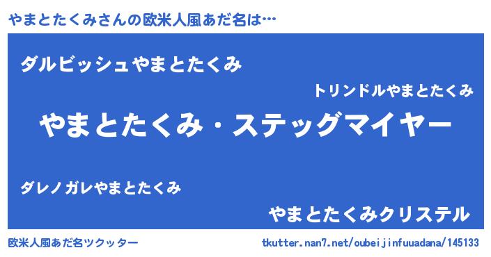 | 男性向けラノベタイトル風あだ名 | 『うちのやまとたくみが世界を掌握している!』 |