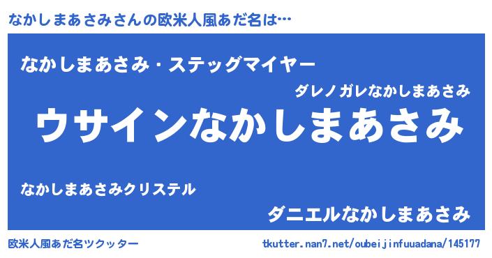 | 男性向けラノベタイトル風あだ名 | 『なかしまあさみの嫁は女の子じゃないと思った?』 |