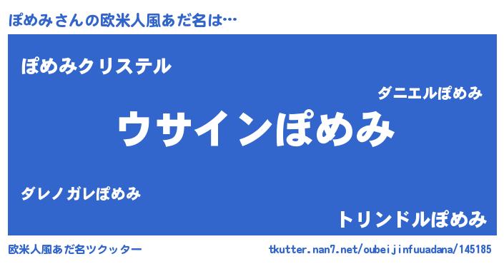 | 女子向けラノベタイトル風あだ名 | 『ぽめみ様がみてる』『ぽめみ伯爵の花嫁』 |
