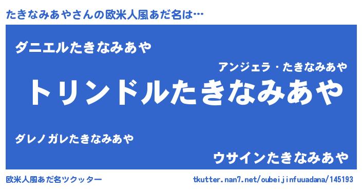 | 男性向けラノベタイトル風あだ名 | 『タキナミアヤスレイヤー』 |