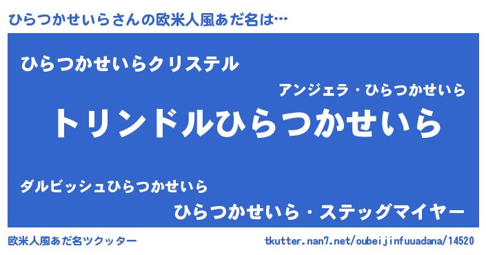 | 男性向けラノベタイトル風あだ名 | 『転生したらひらつかせいらだった件』 |