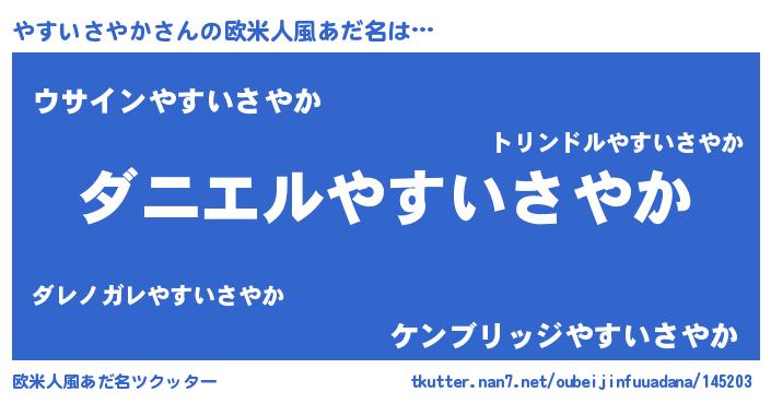 | ピコ太郎風あだ名 | 『ヤヤ太郎』『ヤス二郎』『ヤコ次郎』 |