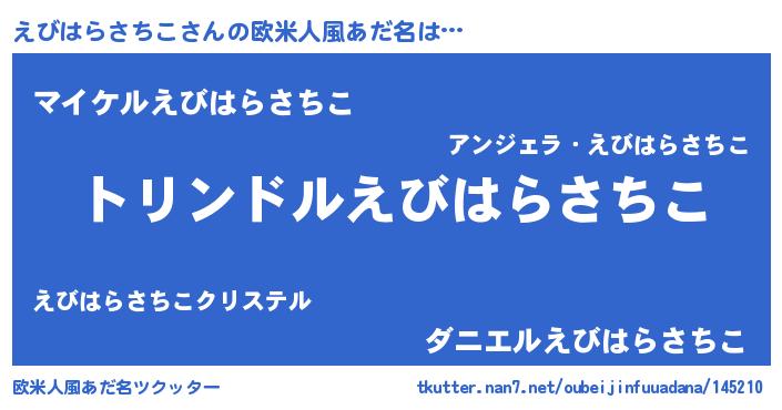 | 男性向けラノベタイトル風あだ名 | 『えびはらさちこ~年齢イコール彼女いない歴の魔法使い~』 |