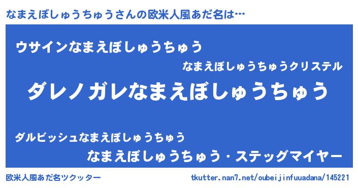 | 男性向けラノベタイトル風あだ名 | 『魔弾の王となまえぼしゅうちゅう』 |