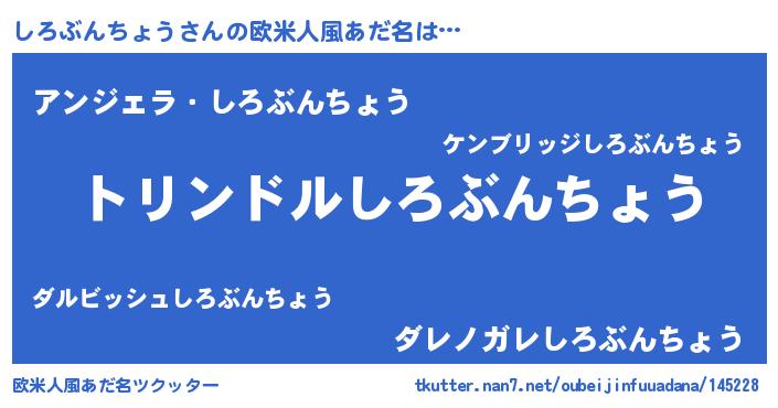 | 男性向けラノベタイトル風あだ名 | 『しろぶんちょう~年齢イコール彼女いない歴の魔法使い~』 |