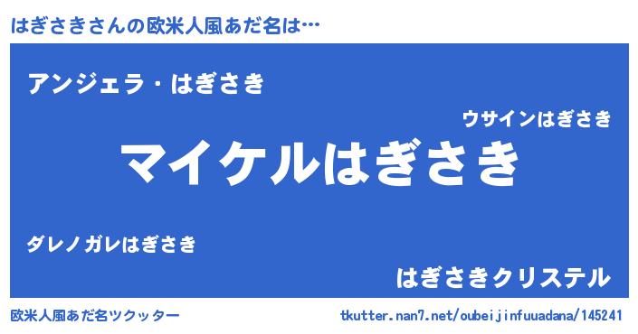 | ファンタジー風あだ名 | 『ハギフェル』『エターナルハギサキー』 |