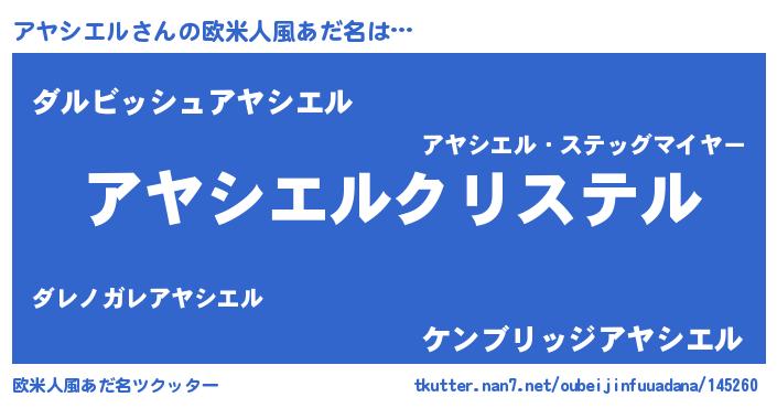 | 男性向けラノベタイトル風あだ名 | 『やはりアヤシエルの青春ラブコメはまちがっている 』 |
