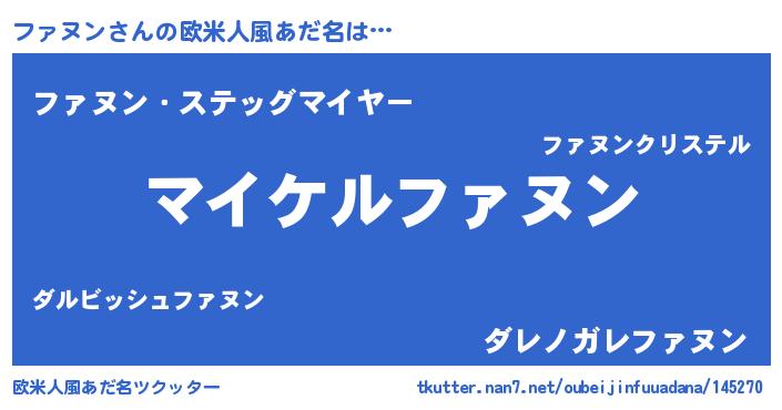 | ファンタジー風あだ名 | 『ファフェル』『カークファラー』 |