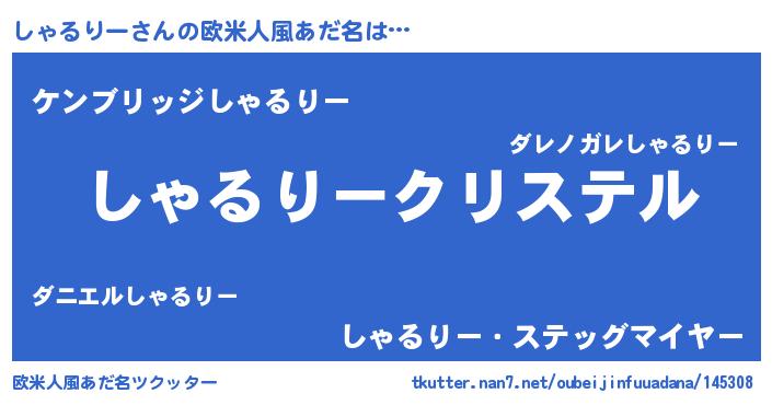 | 男性向けラノベタイトル風あだ名 | 『やはりしゃるりーの青春ラブコメはまちがっている 』 |