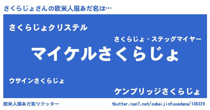 | 男性向けラノベタイトル風あだ名 | 『サクラジョアートオンライン』 |