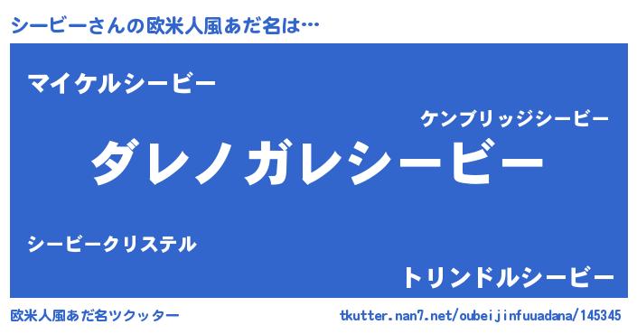 | 意味不明あだ名 | 『住所不定無職シービー(95歳)』 |
