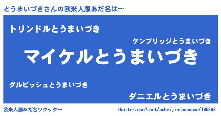 | 胡散臭い通販商品みたいなあだ名 | 『億万長者になれる霊験あらたかなお札…その名も「とうまいづき」』 |