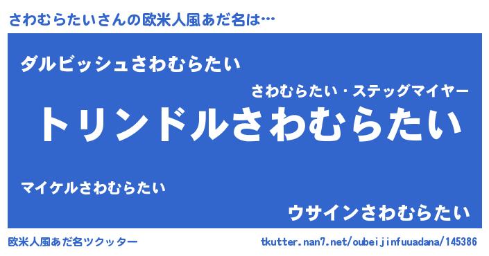 | 男性向けラノベタイトル風あだ名 | 『転生したらさわむらたいだった件』 |