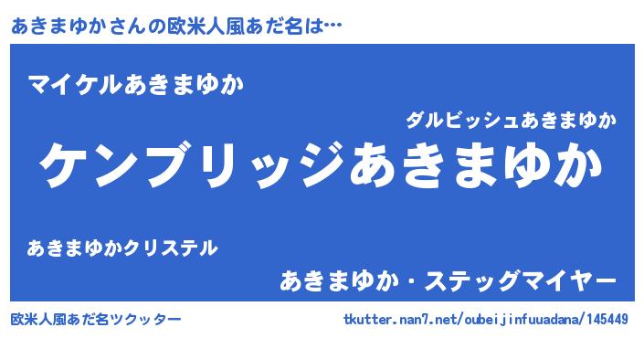| 肩書あだ名 | 『あきまゆか閣下』『あきまゆか御曹司』 |