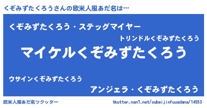 | 男性向けラノベタイトル風あだ名 | 『くぞみずたくろうの憂鬱』 |