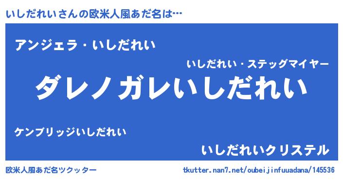 | ヒーロー風カッコイイあだ名 | 『仮面イシダー』『超時空戦士イシダレイ』 |