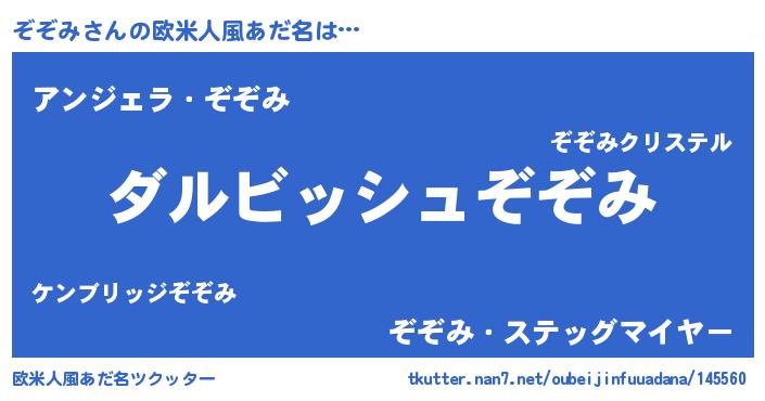 | 男性向けラノベタイトル風あだ名 | 『ぞぞみという概念が存在しない退屈な世界 』 |