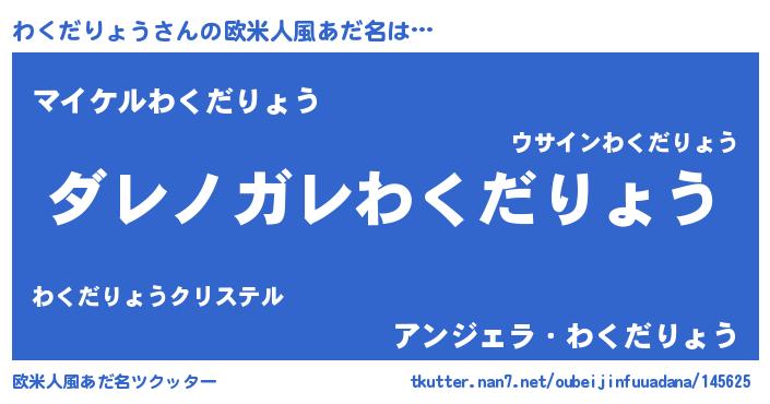 | 女子向けラノベタイトル風あだ名 | 『わくだりょうが死なない童話 林檎のわくだりょうの診療簿』 |