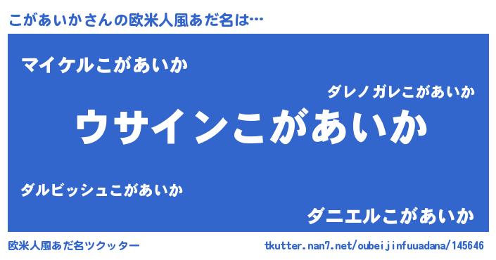 | 胡散臭い通販商品みたいなあだ名 | 『信頼と実績のサプリメント…その名も「こがあいか」』 |