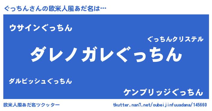 | 男性向けラノベタイトル風あだ名 | 『この素晴らしい世界にぐっちんを!』 |