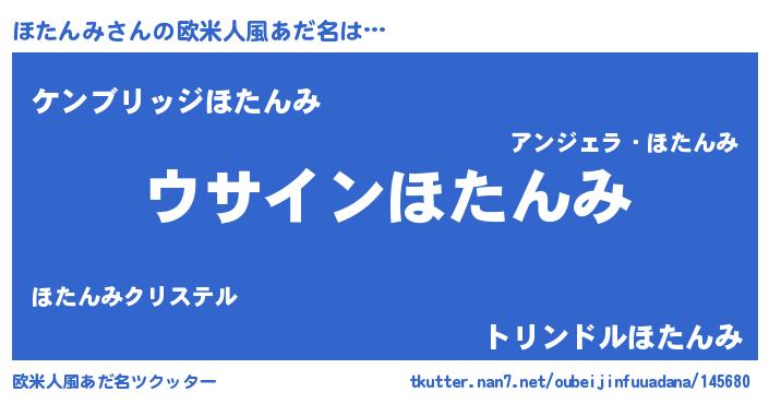 | ヒーロー風カッコイイあだ名 | 『暗黒騎士ホタ』『サイバー戦士ホタンミ』 |
