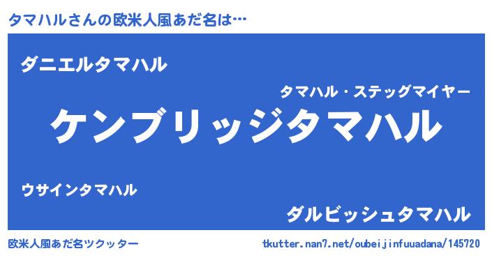 | 女子向けラノベタイトル風あだ名 | 『闇のタマハル』『タマハル恋絵巻』 |