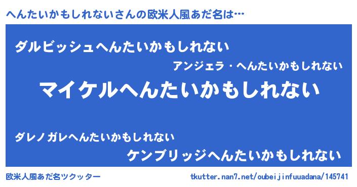 | 男性向けラノベタイトル風あだ名 | 『へんたいかもしれないの憂鬱』 |