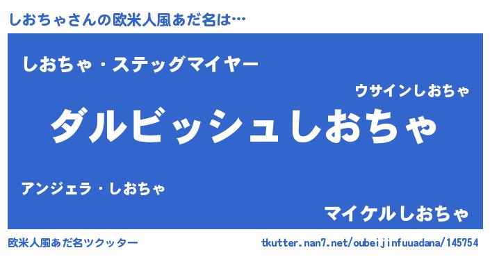 | 女子向けラノベタイトル風あだ名 | 『異世界で失敗しない100のしおちゃ』 |