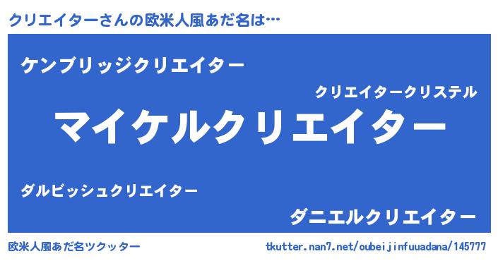 | 胡散臭い通販商品みたいなあだ名 | 『必ず成功する霊験あらたかなお札…その名も「クリエイター」』 |
