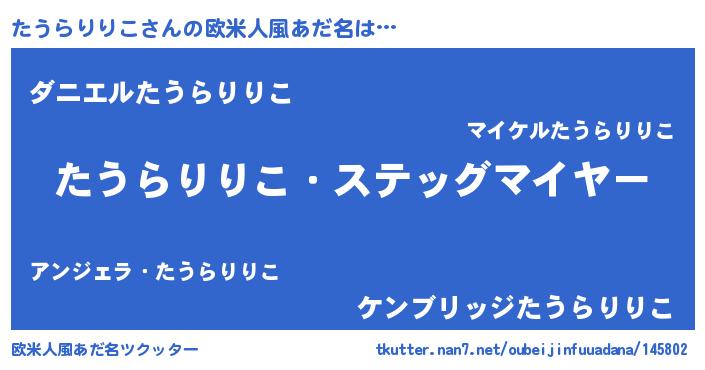 | 男性向けラノベタイトル風あだ名 | 『うちのたうらりりこが世界を掌握している!』 |