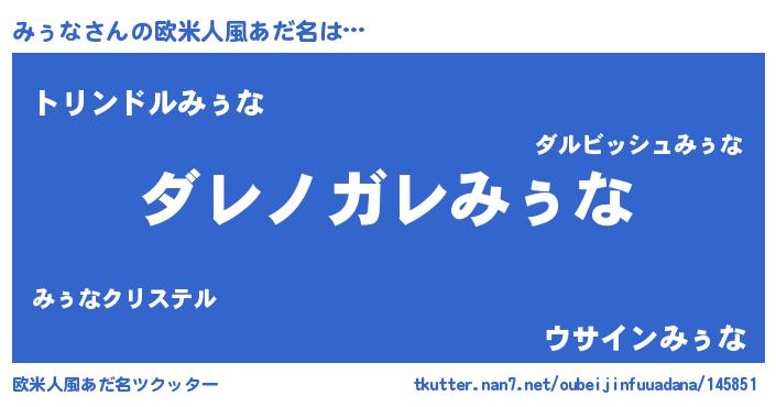 | 男性向けラノベタイトル風あだ名 | 『この素晴らしい世界にみぅなを!』 |