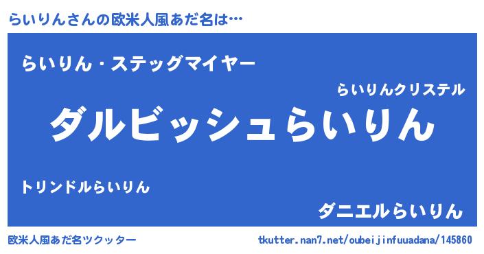| 男性向けラノベタイトル風あだ名 | 『らいりんという概念が存在しない退屈な世界 』 |