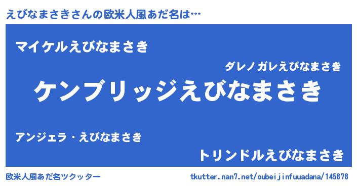 | 男性向けラノベタイトル風あだ名 | 『Re:えびなまさきから始める異世界生活』 |
