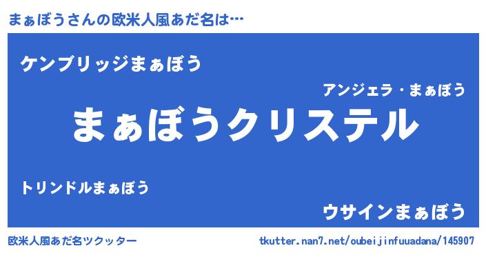 | ファンタジー風あだ名 | 『エターナルマァボウー』『ゼマァトゥ』 |