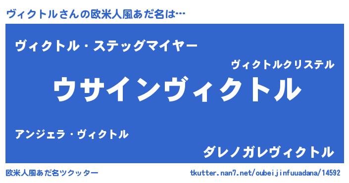 | 女子向けラノベタイトル風あだ名 | 『ヴィクトルの卵を拾いまして』 |