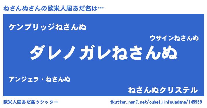 | 意味不明あだ名 | 『住所不定無職ねさんぬ(4歳)』 |