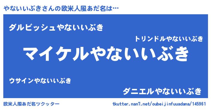 | 男性向けラノベタイトル風あだ名 | 『ヤナイイブキアートオンライン』 |