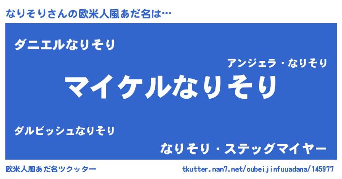 | 男性向けラノベタイトル風あだ名 | 『なりそりの憂鬱』 |