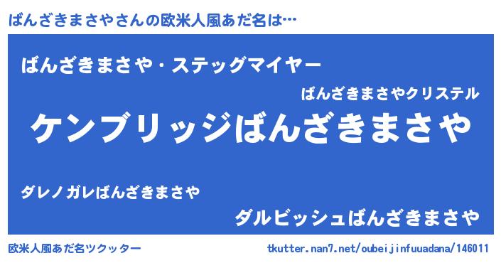| 意味不明あだ名 | 『自称ばんざきまさや』 |