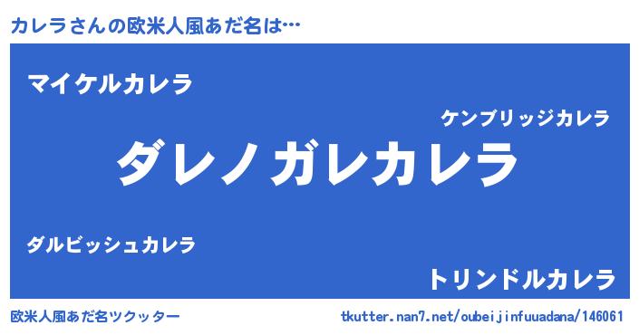 | 男性向けラノベタイトル風あだ名 | 『この素晴らしい世界にカレラを!』 |