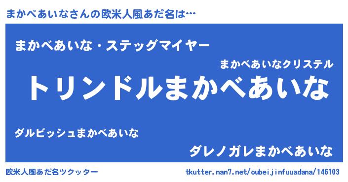 | 女子向けラノベタイトル風あだ名 | 『まかべあいなの玉の輿計画!』 |