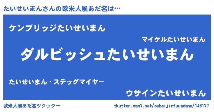 | 男性向けラノベタイトル風あだ名 | 『たいせいまんという概念が存在しない退屈な世界 』 |
