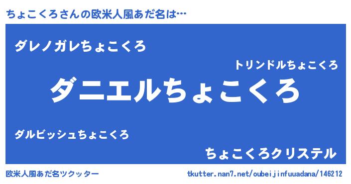 | 男性向けラノベタイトル風あだ名 | 『おまえをオタクにしてやるから、俺をちょこくろにしてくれ! 』 |