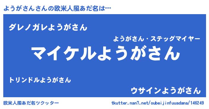 | 男性向けラノベタイトル風あだ名 | 『ヨウガサンアートオンライン』 |