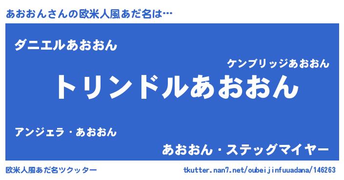 | 男性向けラノベタイトル風あだ名 | 『アオオンスレイヤー』『緋弾のアオオン』 |