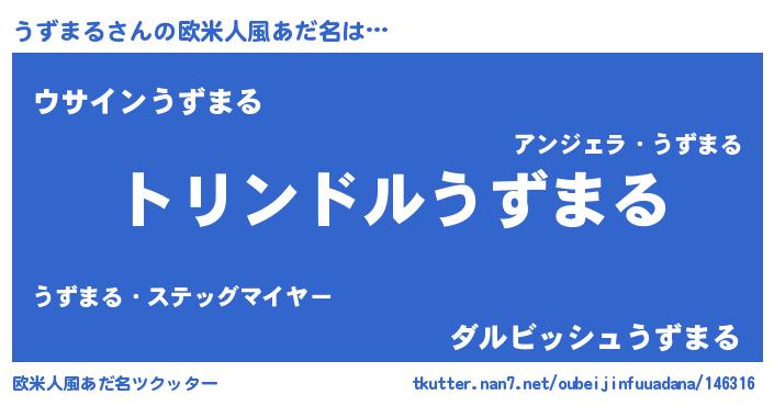 | ヘコむあだ名 | 『うずっ子』『うずまる(笑)』 |