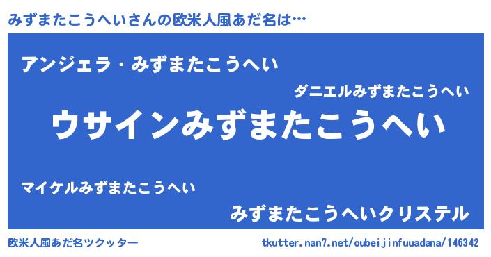 | 男性向けラノベタイトル風あだ名 | 『みずまたこうへいの嫁は女の子じゃないと思った?』 |