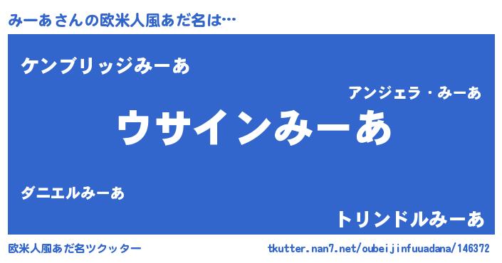 | ヒーロー風カッコイイあだ名 | 『炎刃騎士ミー』『ウルトラ戦士ミーア』 |
