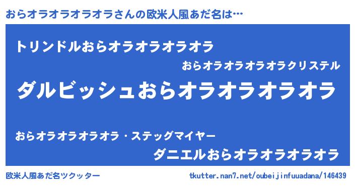 | 男性向けラノベタイトル風あだ名 | 『おらオラオラオラオラという概念が存在しない退屈な世界 』 |