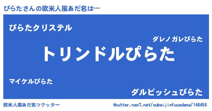 | 男性向けラノベタイトル風あだ名 | 『ピラタスレイヤー』『魔弾の王とぴらた』 |